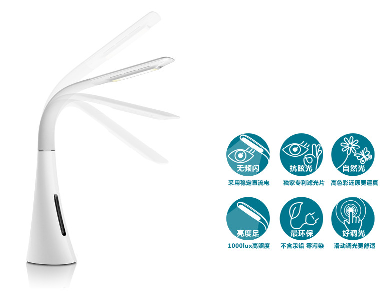 易視界產(chǎn)品親子智能護(hù)眼臺(tái)燈全新LED面光源,顏色逼真更護(hù)眼,光照效果更集中明亮;觸摸指示背景燈,優(yōu)雅靈動(dòng)操控體驗(yàn);高靈敏滑動(dòng)觸摸按鍵,滑動(dòng)調(diào)光;七級LED燈光亮度調(diào)節(jié),適應(yīng)各種照明要求;產(chǎn)品收納方便,軟管燈臂設(shè)計(jì),更容易調(diào)整到需要的優(yōu)質(zhì)角度;光源不含鎢、汞等有毒金屬,低碳環(huán)保。榮獲歐盟CE認(rèn)證!歐盟RoSH認(rèn)證!及國家技術(shù)專利!