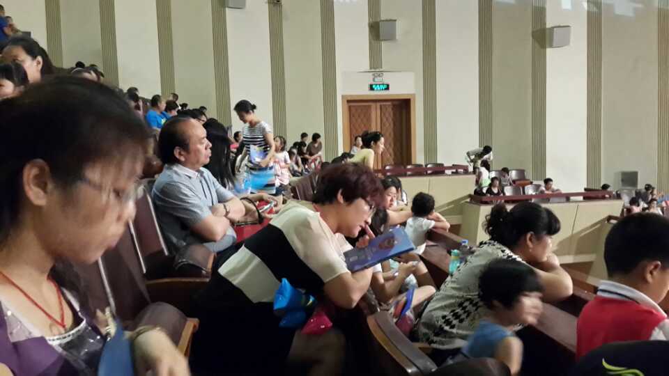 3點整劇場已經(jīng)聚滿了前來觀看《藍世界》的家長和小朋友們,場面很是壯觀,從小朋友眼神中可以看出對《藍世界》的好奇。
